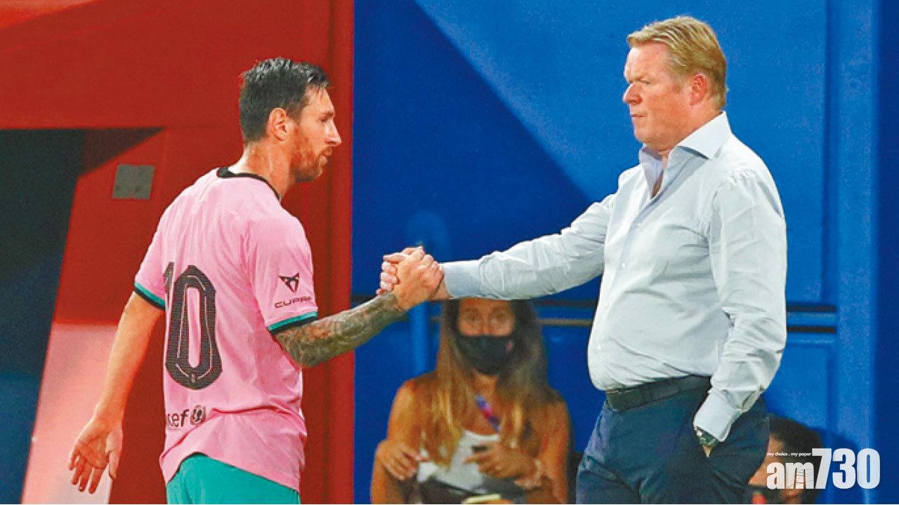 巴塞隆拿於告魯夫球場友賽乙組的基羅納,藉著經過一番擾攘後最終留隊的美斯(圖左)梅開二度,以3比1贏波。外借拜仁慕尼黑後回歸的菲臘古天奴,於21分鐘接應新兵法蘭斯高查卡奧橫傳射入空門,為巴塞先開紀錄,美斯於上半場完結前,禁局外右腳妙射擦柱入網,把紀錄拉開至2比0。基羅納於換邊後僅1分鐘追回一球,但美斯5分鐘後起腳省中人改變方向入網,令巴塞最終贏3比1。蘇亞雷斯今仗未有獲列入大軍名單,主帥朗奴高文坦言未知他會否離隊:「我今早跟蘇亞雷斯談過。我們仍在等待,仍未知他他會否離隊。我們都尊重合約,如他最終留隊,他將是大軍的一員。」