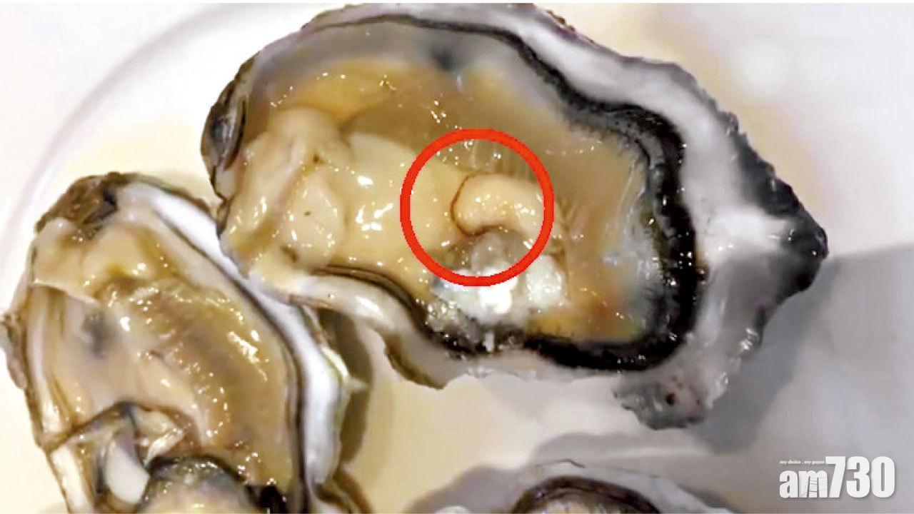 生蠔有蟲?廣州姓陸男子日前與4名友人到當地新開的希爾頓(Hilton)集團旗下五星級康萊德酒店(Conrad Guangzhou)吃自助餐,發現其中一隻生蠔上有蟲蠕動(圖,紅圈示),要求退款卻一度遭拒。酒店事後解釋,涉事的蟲是一種對人體無害的海蚯蚓,懷疑是撬生蠔時從外殼掉到肉上,另有生蠔業者指,海蚯蚓營養價值高,「賣幾百塊一斤」。