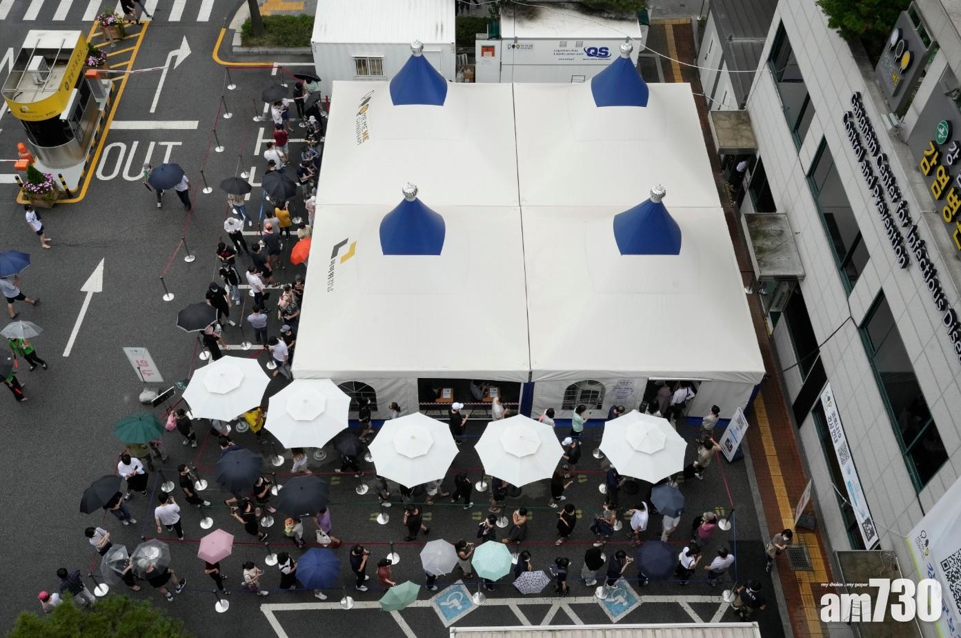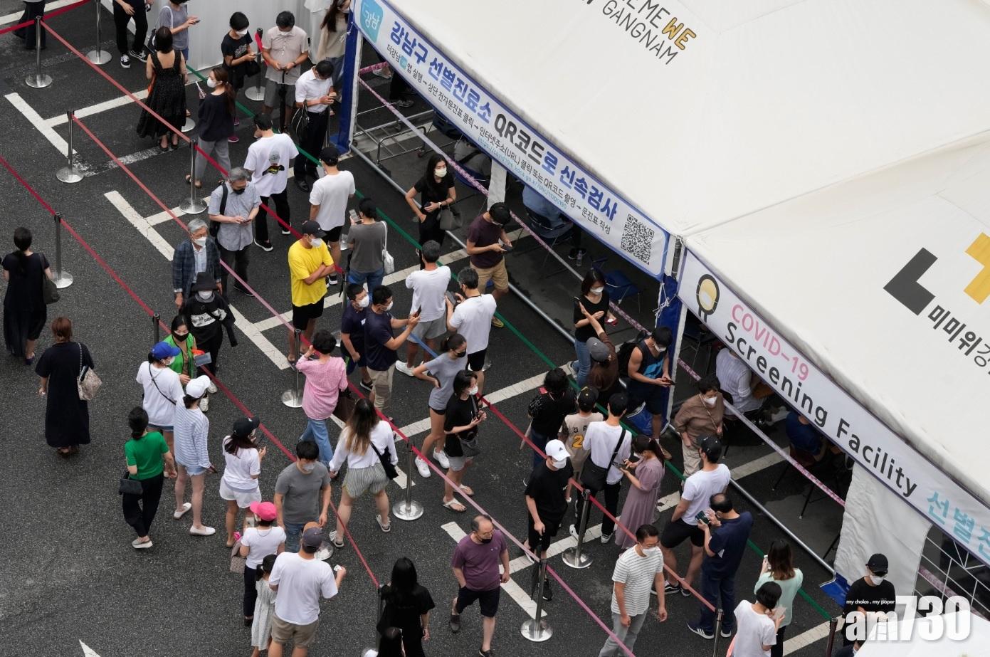 首爾民眾周日排長龍做病毒檢測。(美聯社)