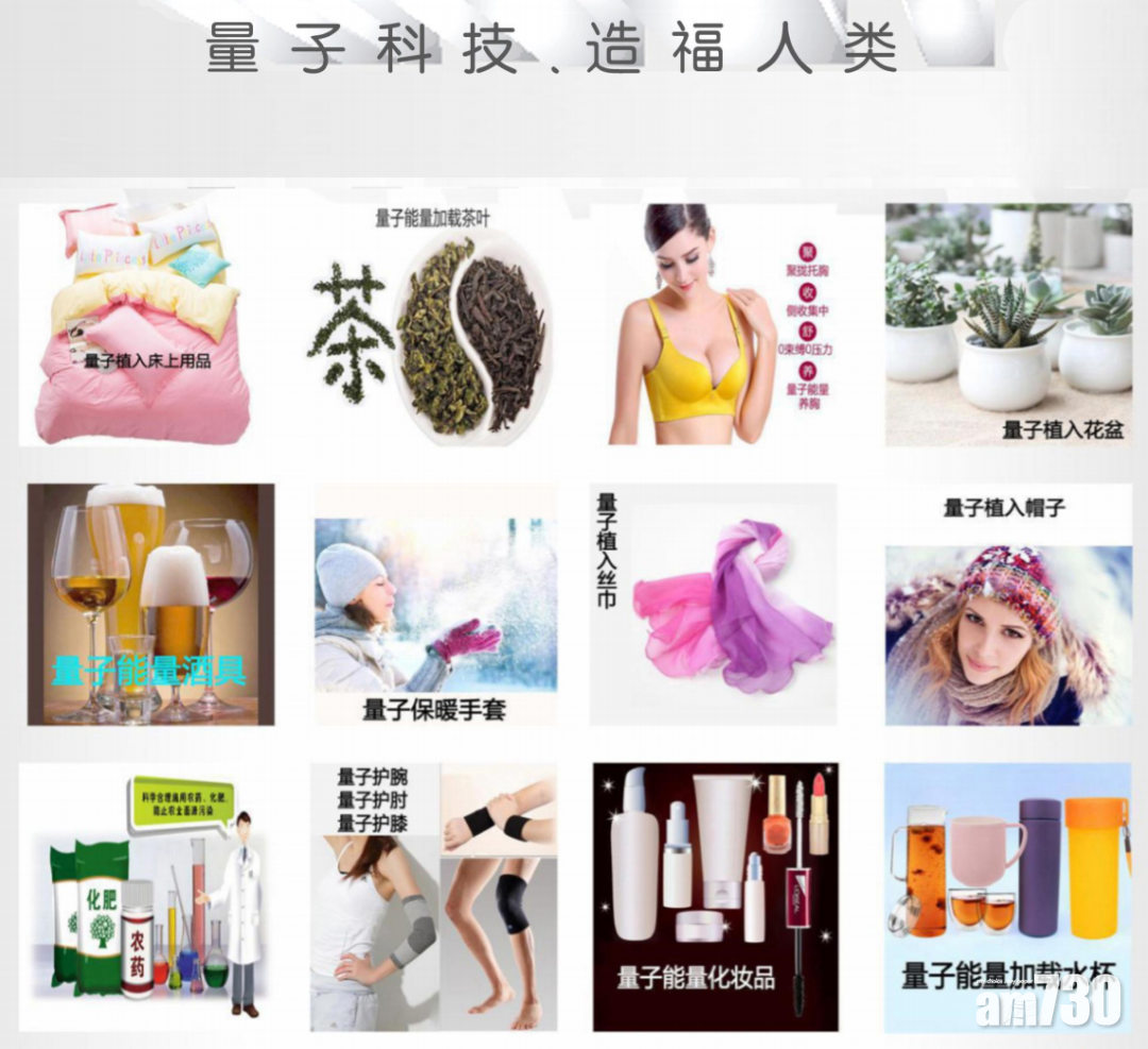 萬物都可以加入量子,變成有保健、治療效果的「神器」?《新京報》報道,內地近年湧現大批打著「量子科技」旗號的產品,量子底褲、量子胸圍、量子頸巾、量子手套、量子眼鏡、量子鞋墊、量子水、量子化妝品、量子水杯酒杯、量子花盆……應有盡有。報道集中調查量子內衣、胸圍,發現淘寶有不少店舖售賣量子內衣,價格由十幾至過百元(人民幣,下同)不等,「功效」愈強大、售價愈高。