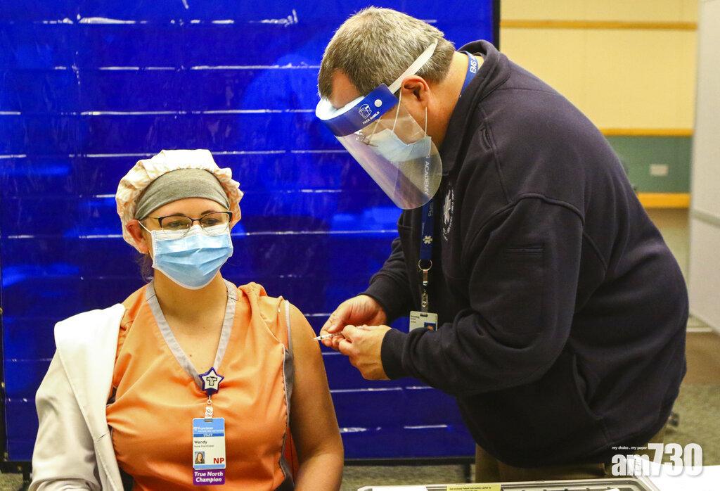 印第安納州護士上周五注射輝瑞疫苗。(美聯社)