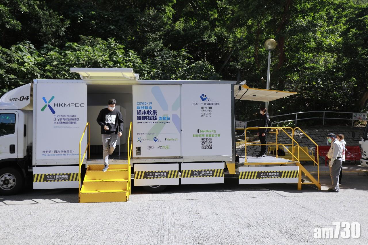 鯉魚門邨今日有流動採樣車。(林俊源攝)