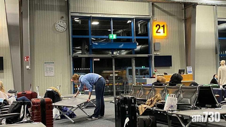 昨晚趕及最後一班客機,從英國抵境旅客滯留在德國漢諾威機場,等待接受病毒檢測。(互聯網)