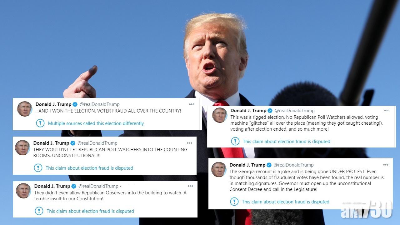 被美國傳媒推算於總統大選中落敗的現任總統特朗普,在社交網站轉發多篇關於今次選舉的帖文,他重申自己在大選中勝出,選舉詐騙遍布全國,他聲稱今次選舉受操控,包括沒有共和黨的觀察員獲准監票,投票機器出現「故障」。