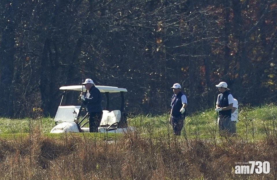 傳媒稱拜登取得足夠選舉人票入主白宮時,特朗普正打高爾夫球。(美聯社)