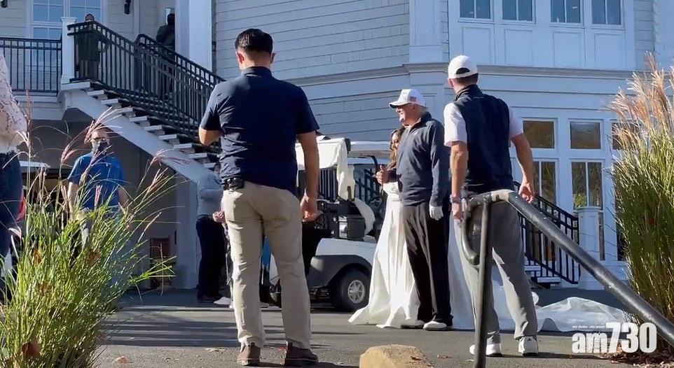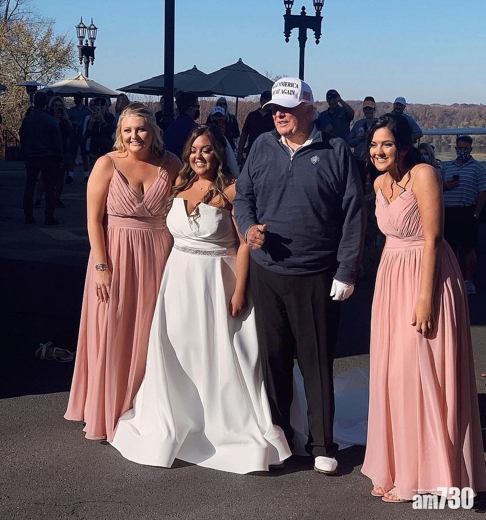 在高爾夫球場舉行婚禮的新娘邀請特朗普合照。(互聯網)