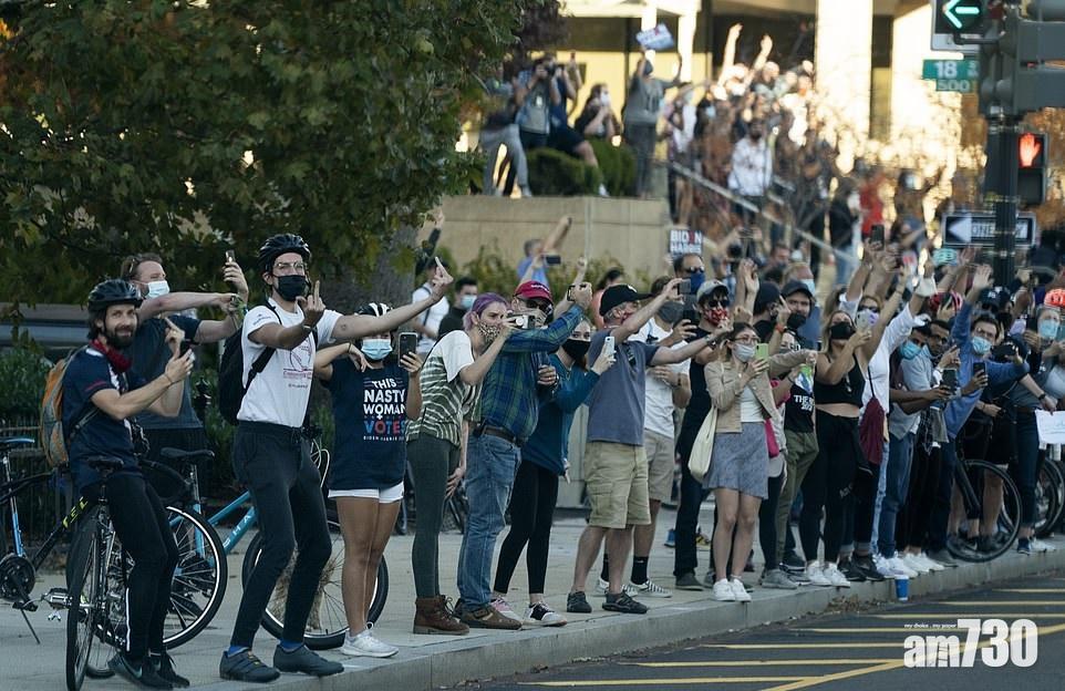 美國大選民主黨參選人拜登已發表當選總統勝利演說,但競逐連任的特朗普還未承認敗選,指控拜登陣營「舞弊」,揚言其法律團隊準備周一提出訴訟。美國傳媒昨宣布推算拜登勝出大選時,特朗普正在白宮附近、名下的高爾夫球場打高球,他離開時應該已知消息,但仍應一名新娘子邀請與其合照,開心面對鏡頭,還豎起拇指。特朗普當天下午返回白宮時,迎接他的除了支持者的呼歡聲,也有示威者的噓聲。