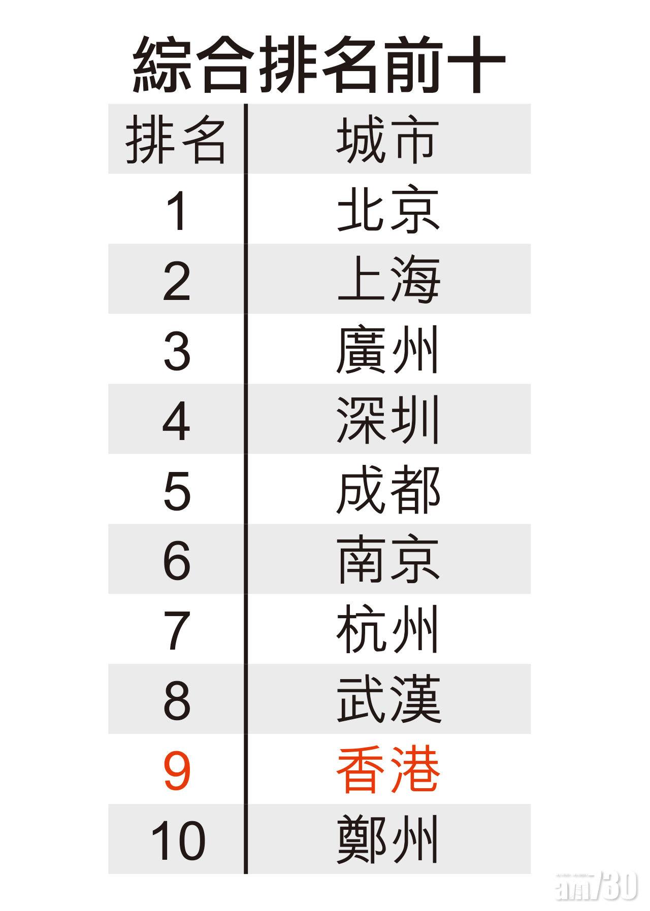 報告自2014起每年發布,受觀察城市每年都有增加,去年首度加入香港、澳門等8個城市,今年則加入吉林長春、內蒙古呼和浩特、江西南昌及廣西南寧。澳門綜合排名今年一如去年不入前十,北京、上海則連續第3年蟬聯第1、2位。金軍認為,北上廣深(前4名城市)已是名副其實的「超一線」城市,能與世界級城市比肩,而「新一線」城市如成都、南京、杭州、武漢及河南鄭州等,亦有充足發展動力和人才吸引力。