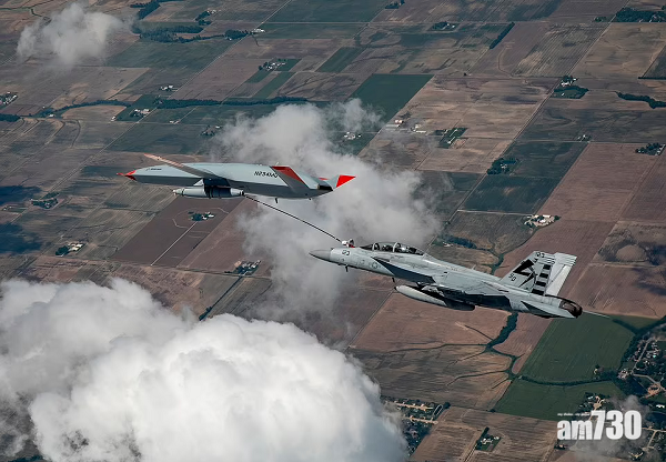 美國海軍周一公布,上周五一架無人駕駛加油機,成功在空中為海軍的F/A-18超級大黃蜂戰機加油,創造歷史性一刻,整個測試的飛行過程歷時約4.5小時。由兩名機師駕駛的戰機從伊利諾伊州一個空軍基地出發,在半空中與波音公司擁有的MQ-25 Stingray無人機的油管接駁,輸入了325磅燃油,兩架飛機在過程中的最近距離是20呎。美國海軍稱,會分析今次測試的數據,再決定是否修改有關軟件。