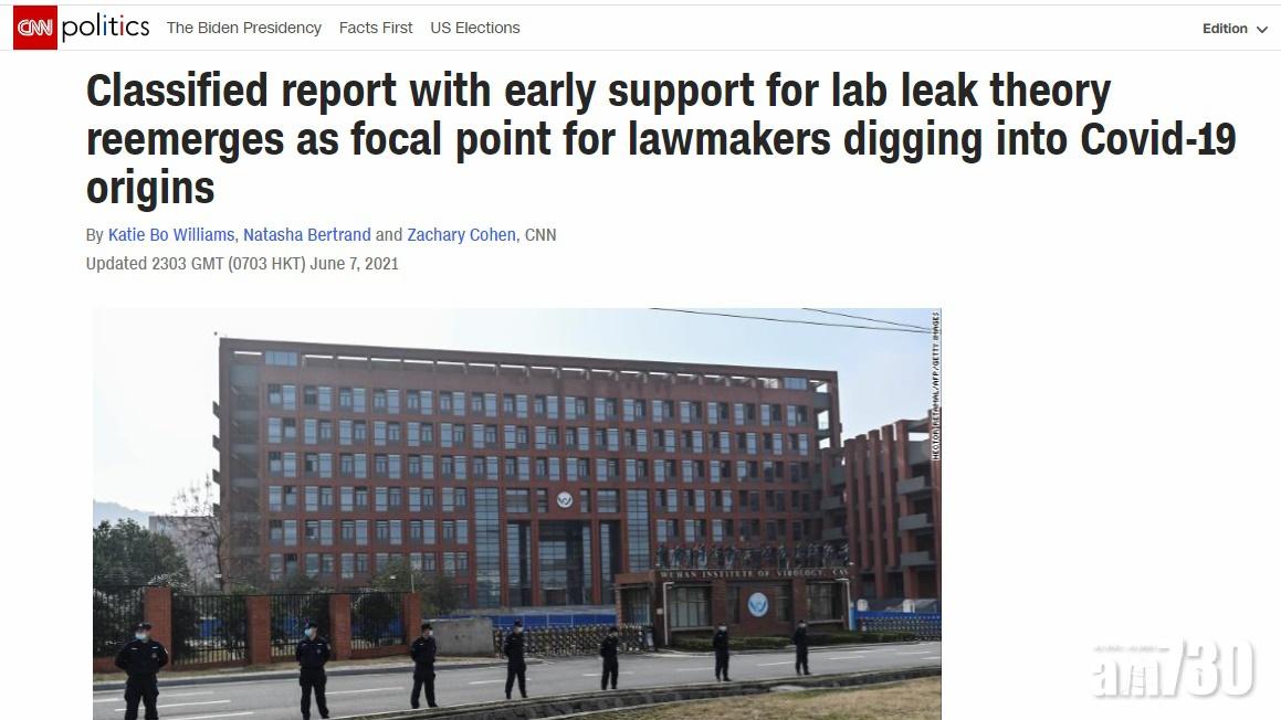 《華爾街日報》(WSJ)及美國有線新聞網絡(CNN)引述消息報道,美國政府的國家實驗室一份機密報告得出結論,指稱新冠病毒從武漢實驗室洩漏的假設「貌似有理」,值得進一步調查。