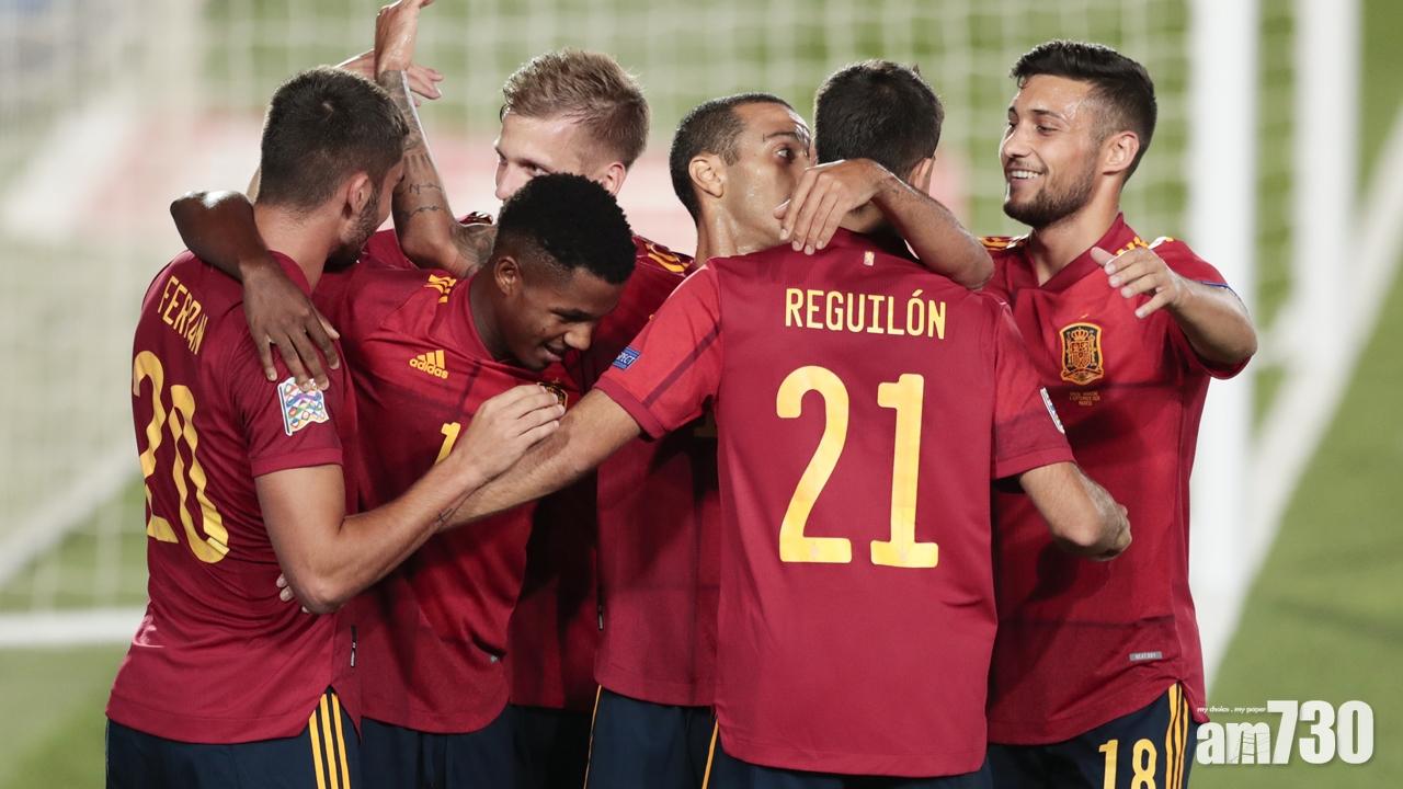 歐洲國家聯賽,A4組賽事,西班牙4:0大勝烏克蘭。效力皇家馬德里的西班牙隊長沙治奧拉莫斯開賽3分鐘射入十二碼,到29分鐘再接應傳送頭鎚頂入。西班牙今場17歲巴塞羅那小將安素法迪,首次代表國家隊上陣,在32分鐘在禁區外入網,同時打破國家隊最年輕入球紀錄。84分鐘費倫托里斯再入一球。西班牙兩戰一勝一和排在小組榜首。
