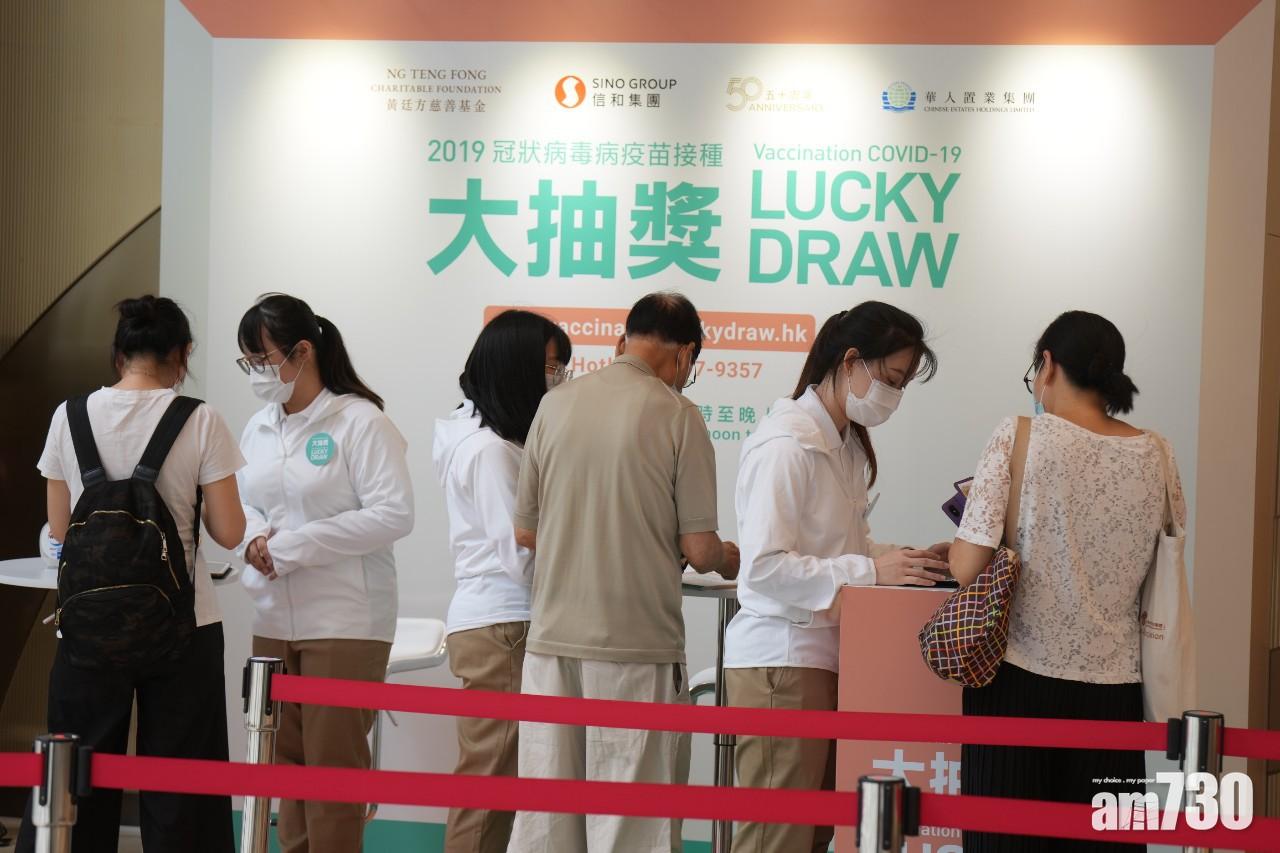 商界推出各項大抽獎「谷針」,其中全城關注的信和「凱滙」抽樓今起接受登記,供已接種兩劑疫苗的港人參與。信和集團表示,截至下午5時,已有逾33.8萬人登記參與。而根據政府數字,截至昨日共有120.3萬人接種第二劑疫苗,即登記抽獎人數佔近三成。