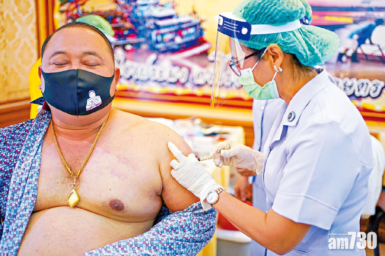 泰國沙目沙空府一名男士,周日接種新冠疫苗。(路透社)