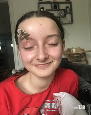 英國12歲女童Kadie Law被微波後的水煮蛋灼傷臉部。(互聯網)