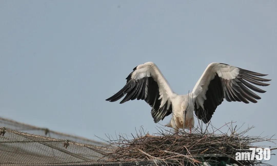 為愛在鳥籠頂築巢的野生東方白鸛。(互聯網)
