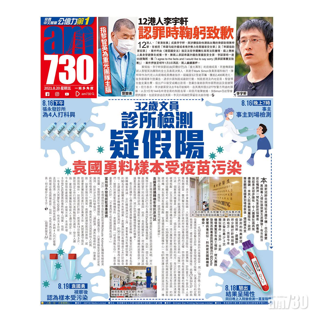 一名文員在張永發醫生診所採集的樣本,疑受科興疫苗病毒污染。(陳奕釗攝)