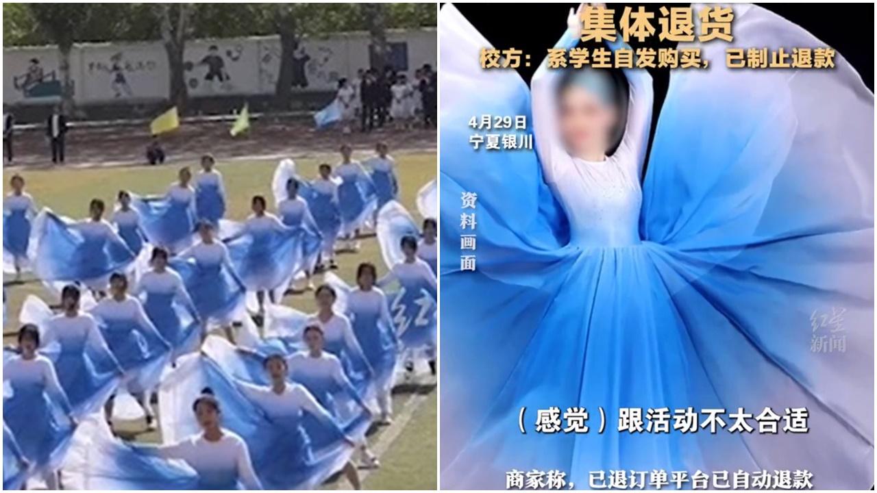 80學生穿舞衣表演後竟集體退貨,網民一面倒批「太缺德」。(微博)