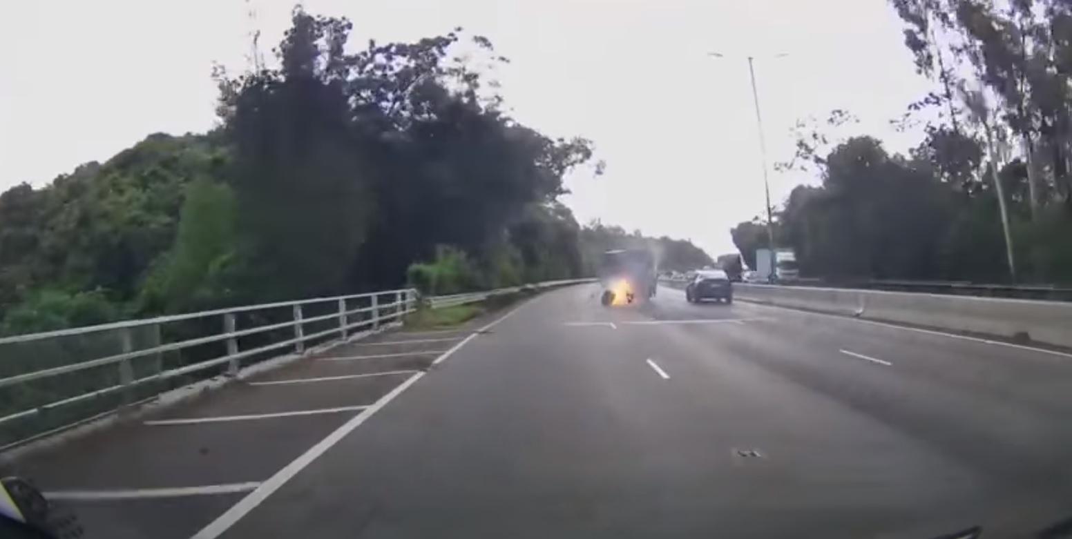 車Cam直擊|新田公路貨車尾突冒煙起火 左後轆飛脫變「風火輪」