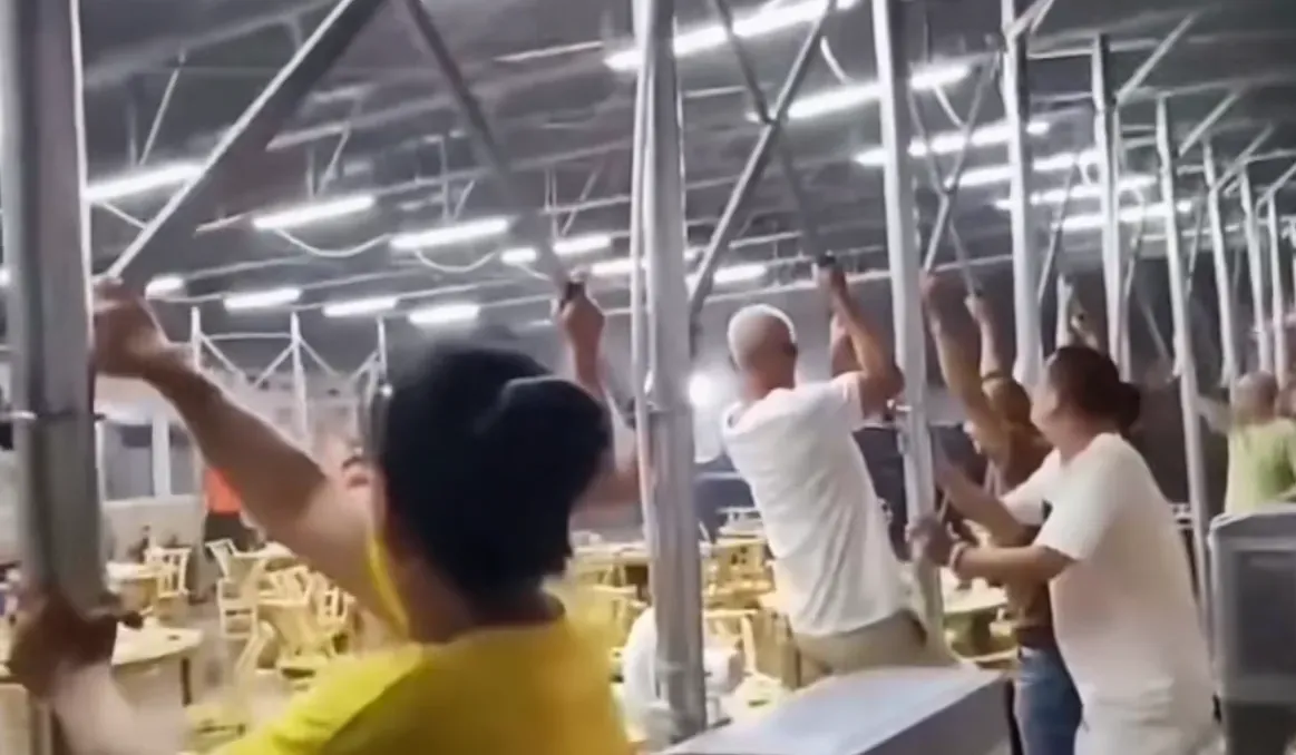 湖北狂風掀起路邊遮雨棚 顧客被連棚帶人吹至半空墜地