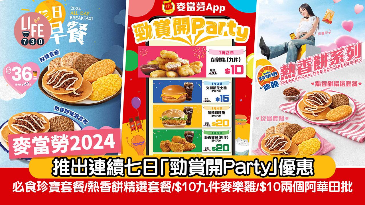麥當勞優惠|元旦全日歎全日早餐/珍寶套餐/熱香餅精選套餐 「勁賞開Party」連續七日推出優惠
