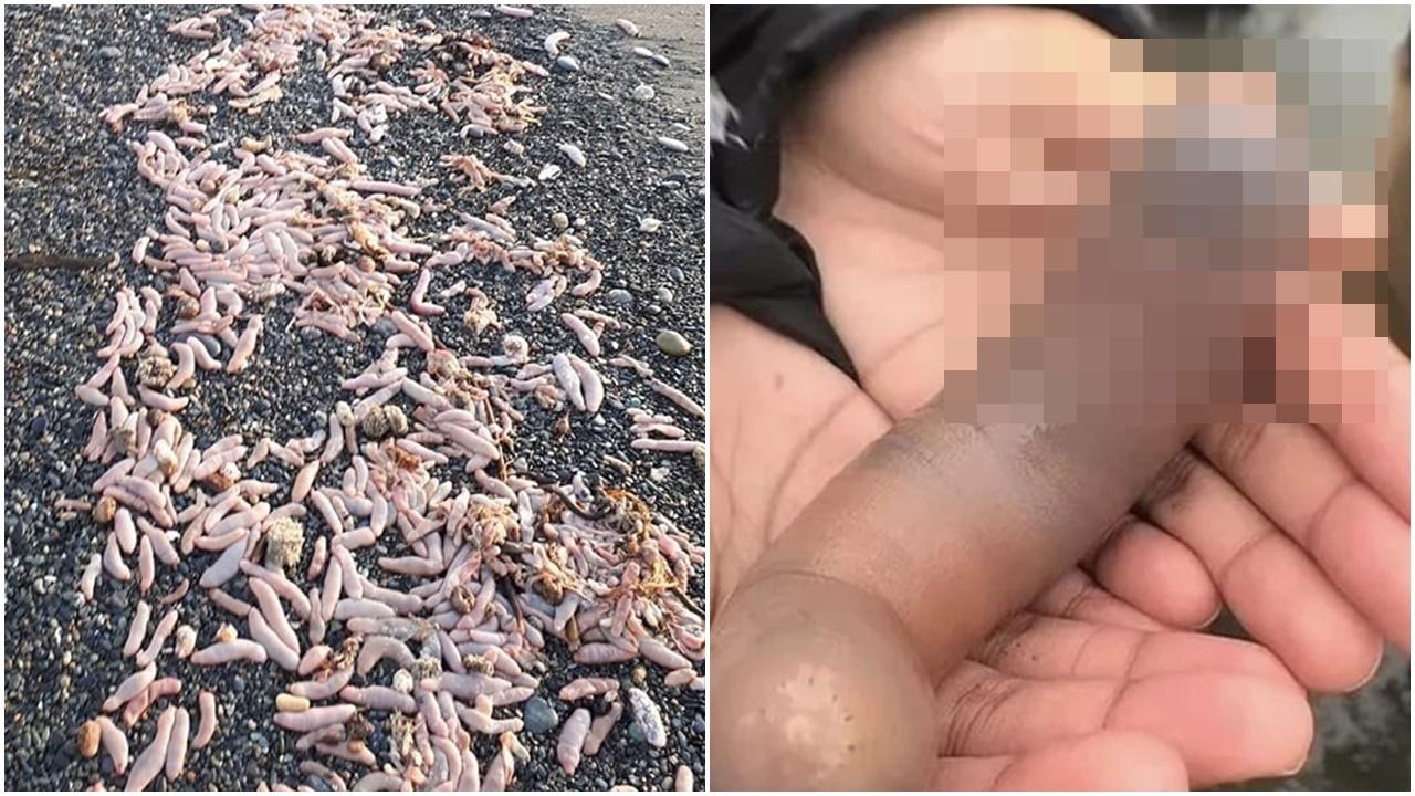 大量肉色腸狀「陰莖魚」出沒,阿根廷漁民爭住搶。(Twitter)