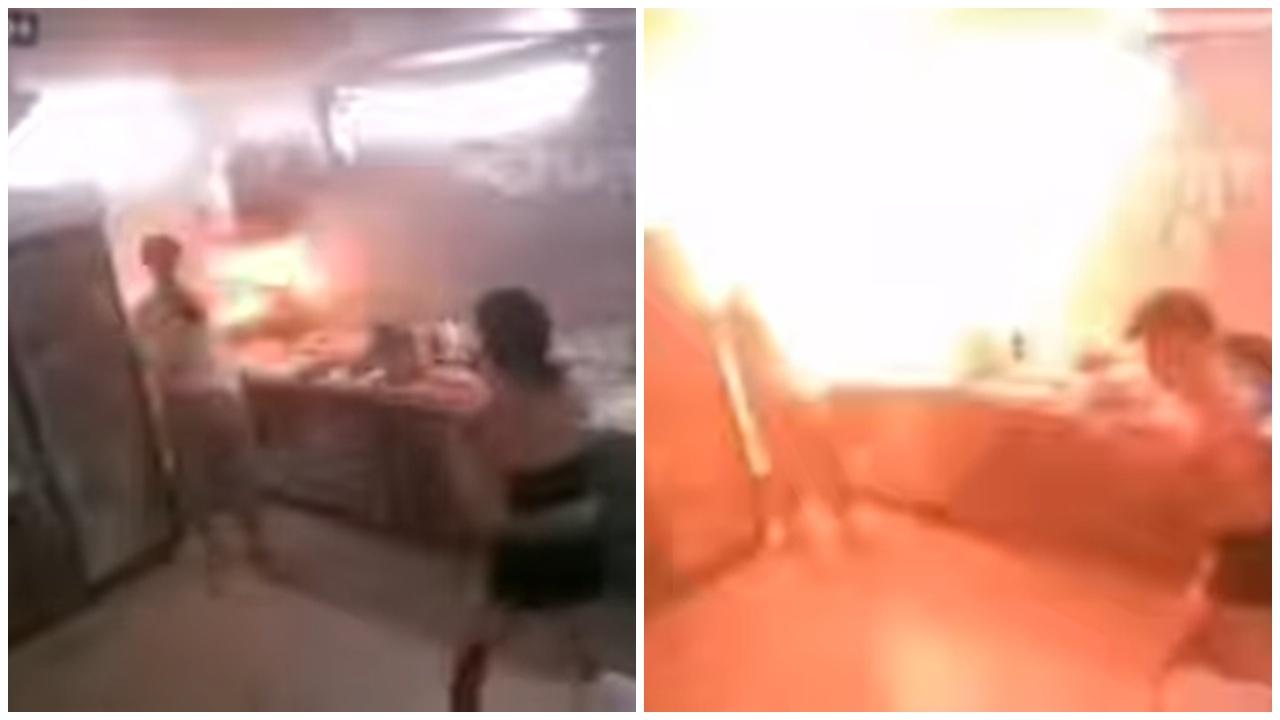 油鍋起火竟用水淋 女職員將咖啡室付諸一炬(有片)