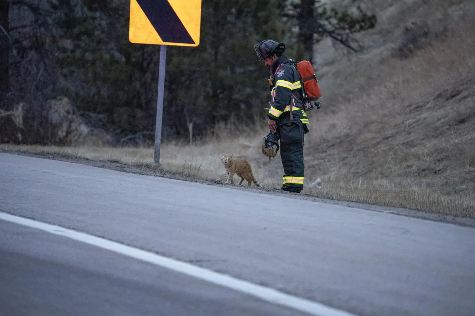 自來貓車禍現場湊熱鬧 消防員被萌翻直接收編