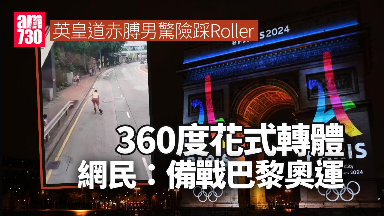 英皇道赤膊男馬路踩Roller兼玩花式 網民:備戰巴黎奧運(有片)