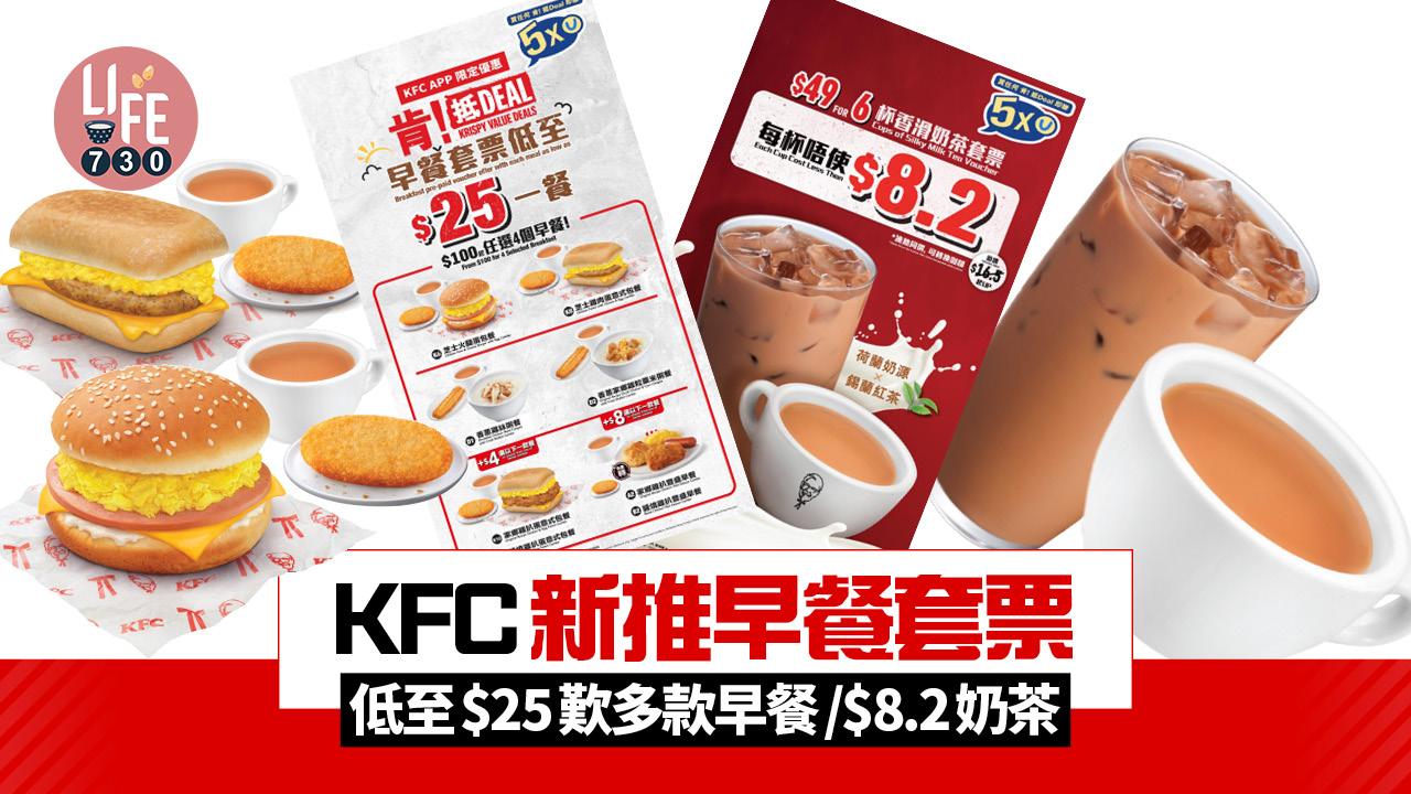 KFC早餐套票 低至$25歎多款早餐!加推奶茶套票 $8.2奶茶