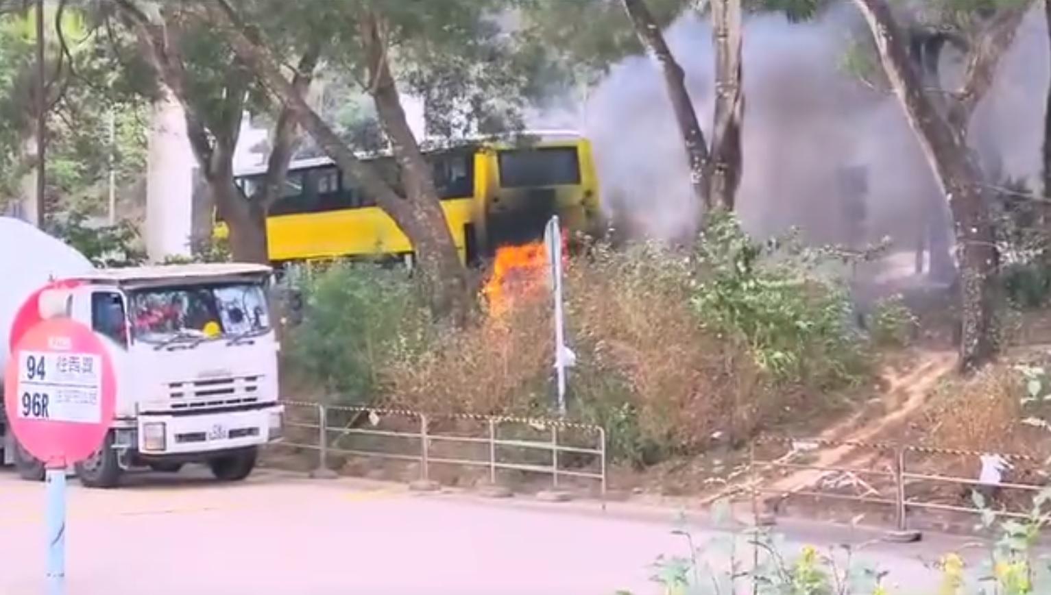 西貢大網仔路城巴車尾突然起火 濃煙席捲半空(有片)