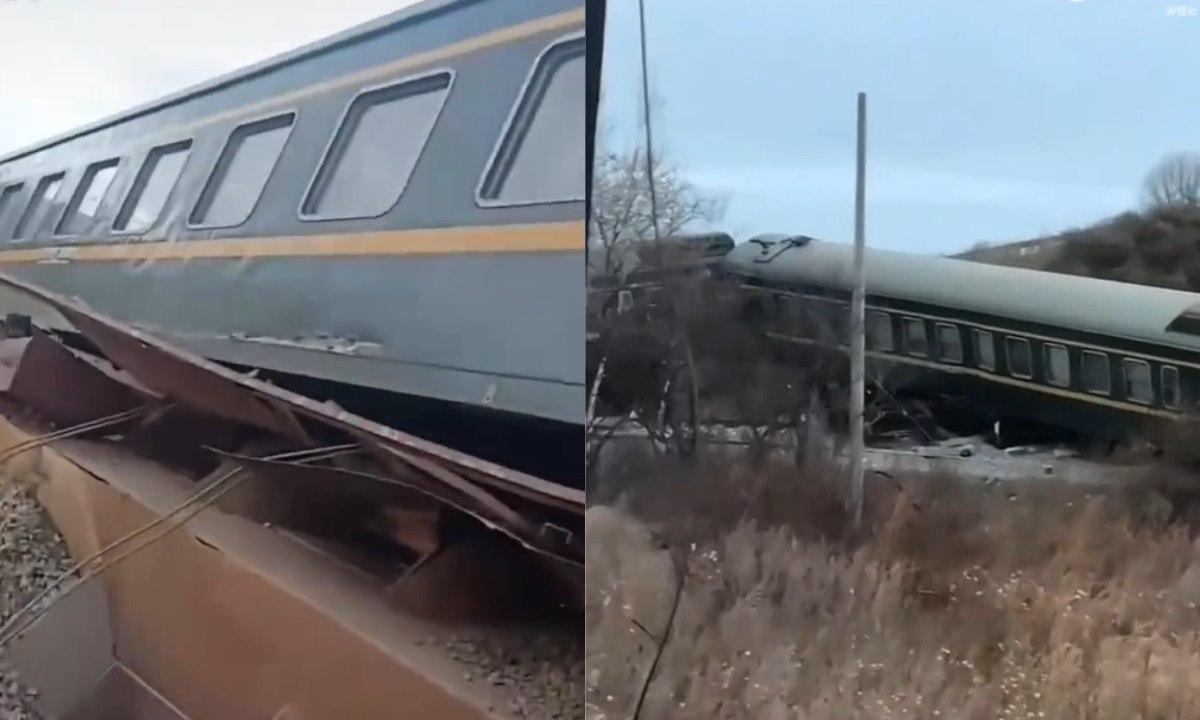 黑龍江列車迎面撞工程車4車廂出軌 哈爾濱鐵路︰無人受傷