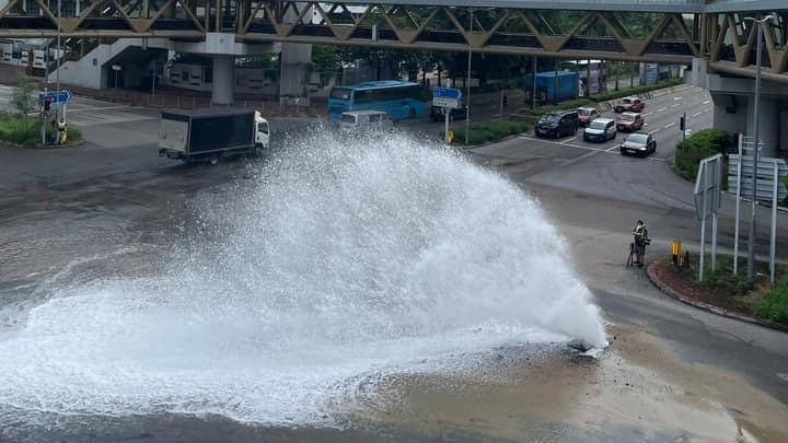 港鐵南昌站對開爆水管噴5米高水柱 警方到場指揮交通(有片)