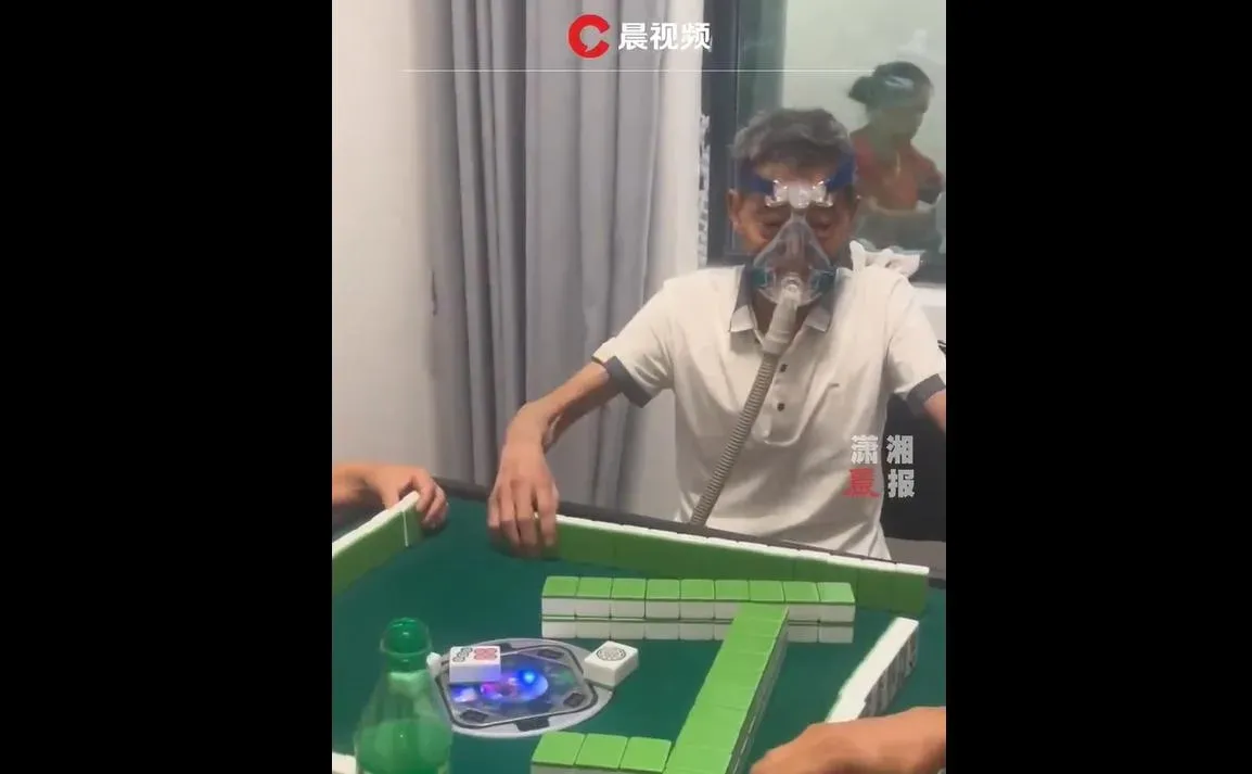 • 湖南72歲翁戴氧氣面罩仍堅持打麻雀 網民:打牌的最高境界