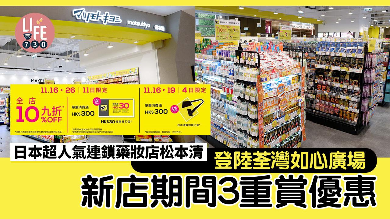 日本超人氣連鎖藥妝店松本清登陸荃灣如心廣場 新店期間3重賞優惠