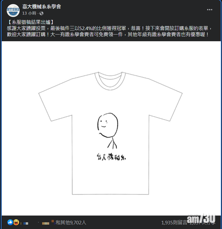 台大機械系Soc Tee引共鳴 聞氫哥留言「奉勸開放全台訂購」
