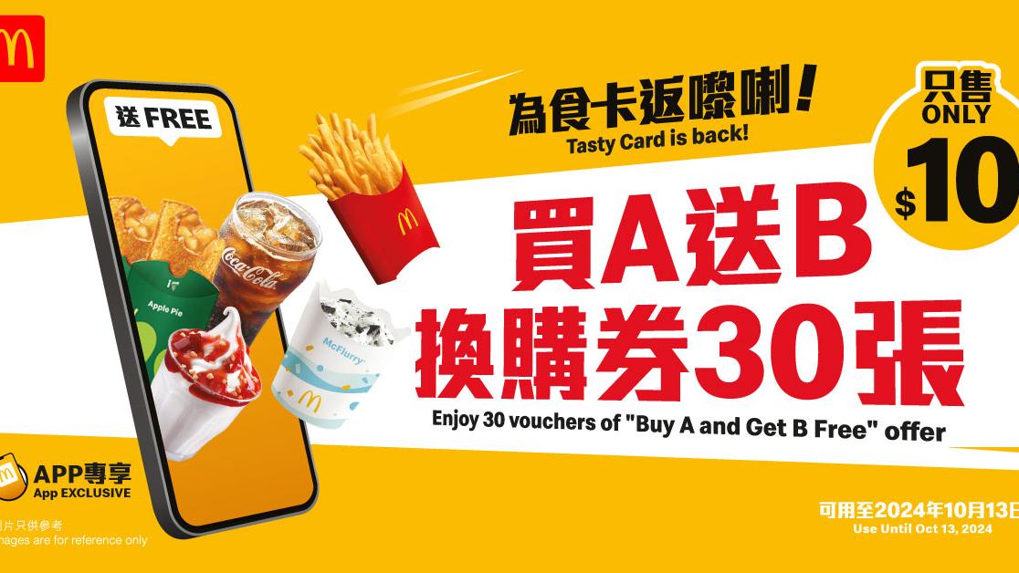 麥當勞推全新$10為食卡 買飲料送薯條/蘋果批/新地 即買即送30張換領券