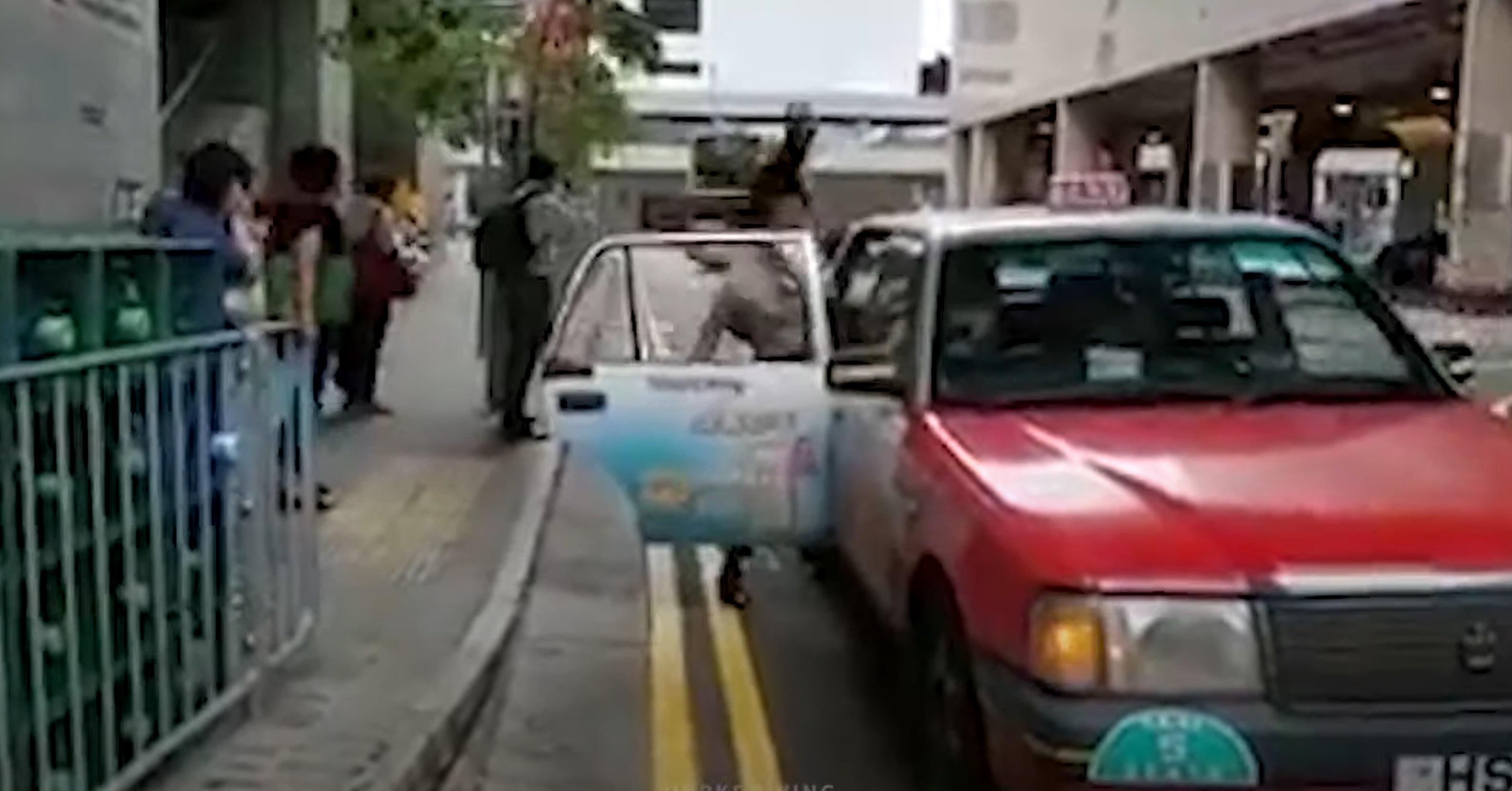 車Cam直擊|中環女子風球下搭的士被吹到頭髮直豎 網民:黑化小岡再現?