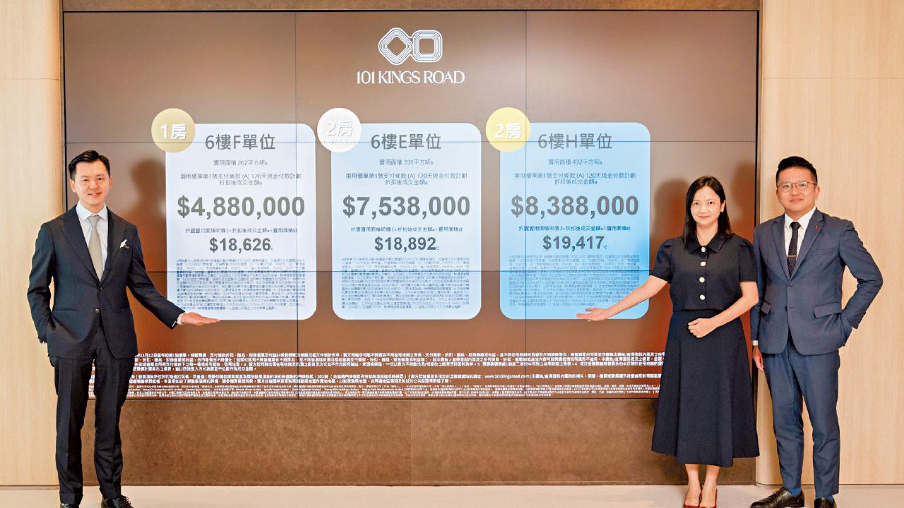 首批折實均呎2.08萬 101 KINGS ROAD 一房入場5球有找
