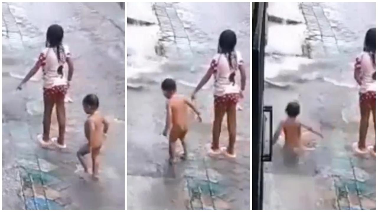 水淹街頭3歲童將下水道當積水 一踏步瞬間人消失(有片)