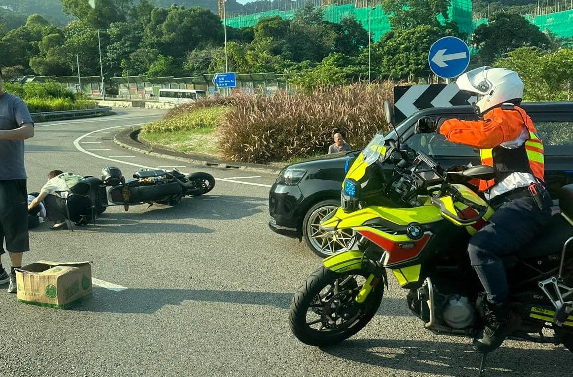 • 西貢南邊圍迴旋處私家車撞電單車 鐵騎士與乘客俱傷
