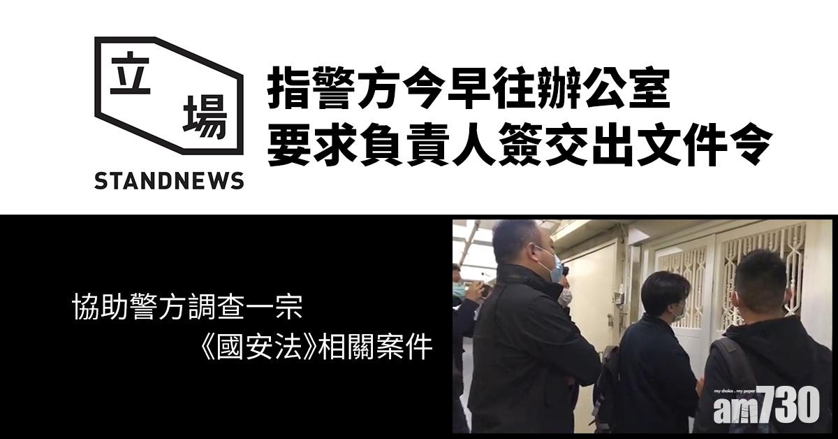 《立場新聞》指警方今早往辦公室 要求負責人簽交出文件令