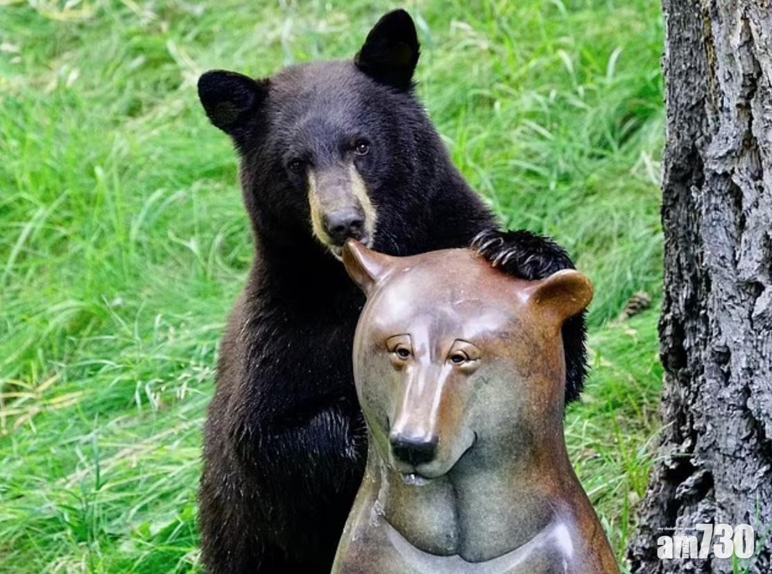 有片|黑熊對金屬雕像又攬又錫 搞乜野?