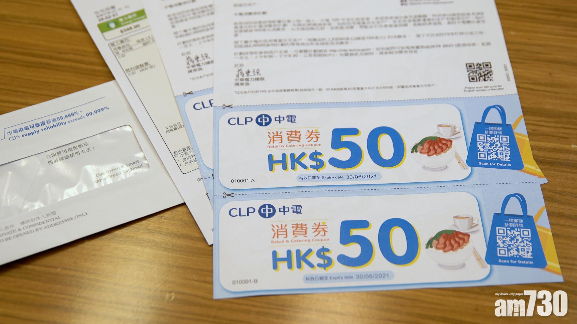 中電向80萬合資格家庭派發100元消費券 有效期6個月