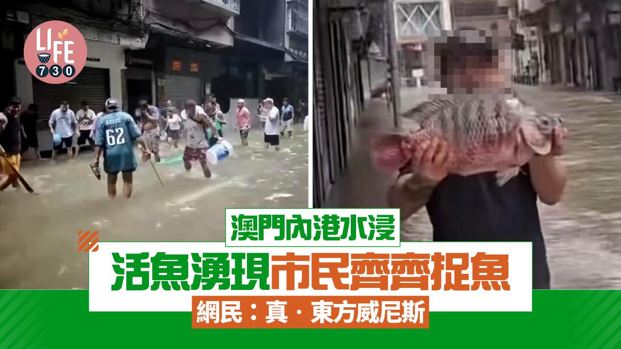 颱風樺加沙|澳門水浸活魚湧現 市民齊齊捉魚 網民:真•東方威尼斯
