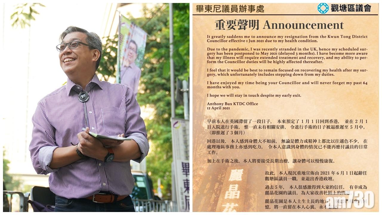 畢東尼6月辭任觀塘區議員 退出香港政壇