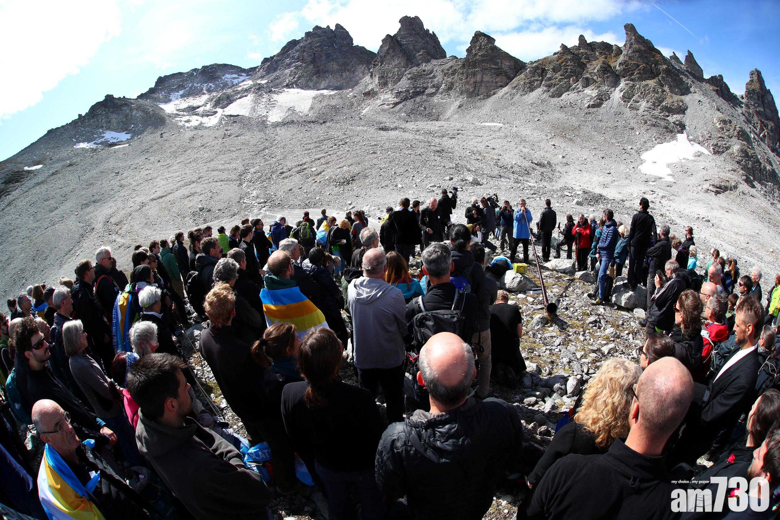 【全球暖化】瑞士冰川融化「死亡」 百人穿黑衣上山悼念