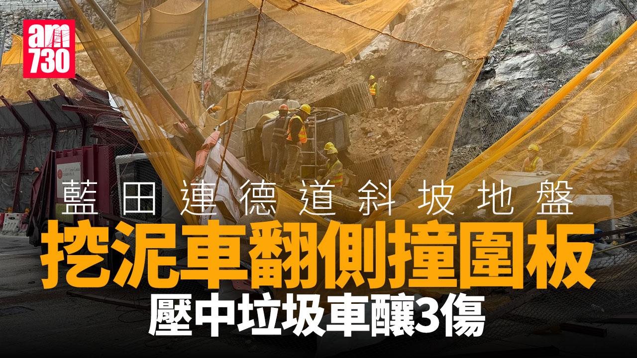 藍田斜坡工程意外 挖泥車翻側撞圍板壓中垃圾車3傷 1人被夾3小時後救出(有片)