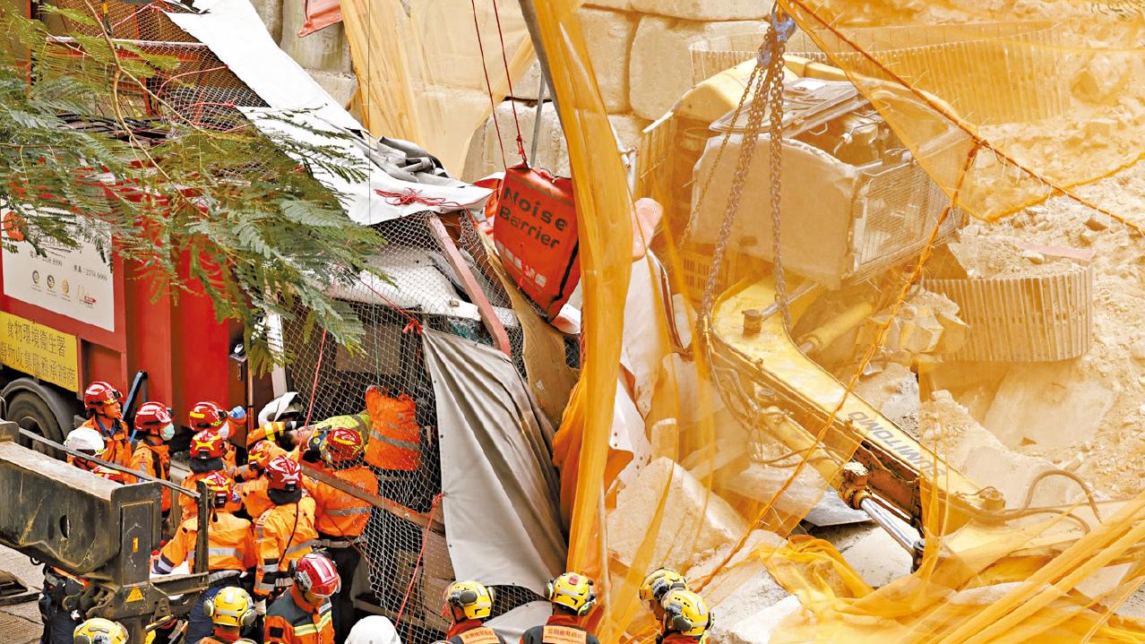 藍田連德道挖泥機滑下撞圍欄壓垃圾車 傷3人 跟車工夾腳困2小時獲救