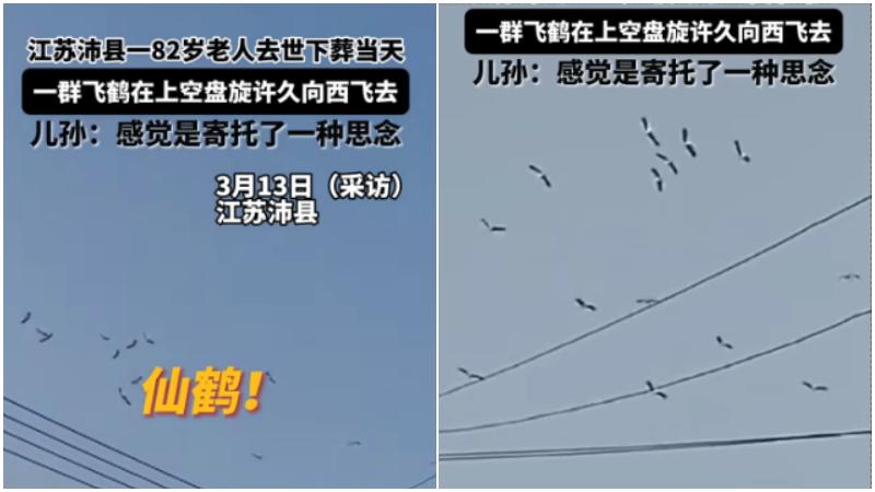 江蘇老人去世網傳獲仙鶴送行 家屬:生前行善積德(有片)