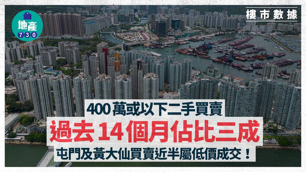 400萬元或以下二手成交佔比三成 屯門及黃大仙買賣近半屬低價個案|樓市數據